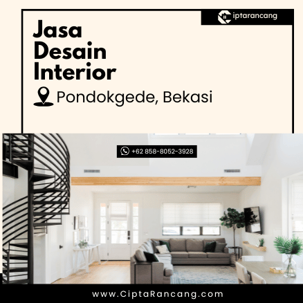Desain interior yang baik tidak hanya membuat ruang kamu lebih menarik tapi juga nyaman dan fungsional. Dengan jasa desain interior dari CiptaRancang.com, kamu mendapatkan layanan profesional di Pondokgede yang terjangkau, lengkap, dan sesuai jadwal. Segera konsultasikan kebutuhan desain interior kamu dengan kami melalui telepon atau WhatsApp di +62 858-8052-3928. Yuk, wujudkan ruang impian kamu sekarang juga!