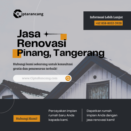 Kami dari Ciptarancang.com siap membantu Bapak/Ibu mewujudkan rumah, kafe, atau kantor impian di Pinang, Tangerang dengan harga yang wajar, pengerjaan profesional, dan hasil berkualitas tinggi.